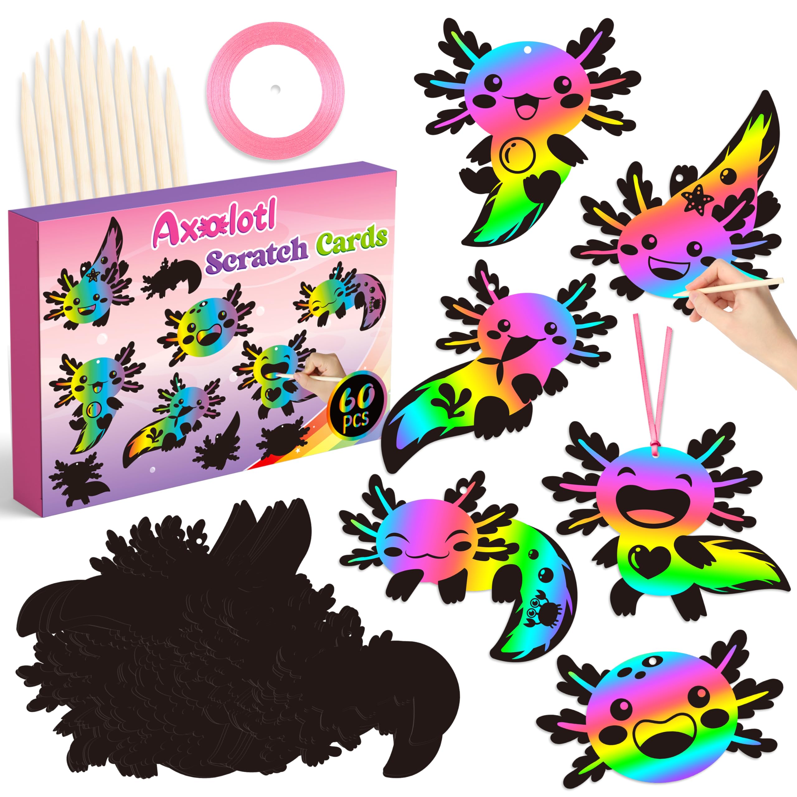 B1ykin 60Pcs Axolotl Scratch Card Gifts ... |