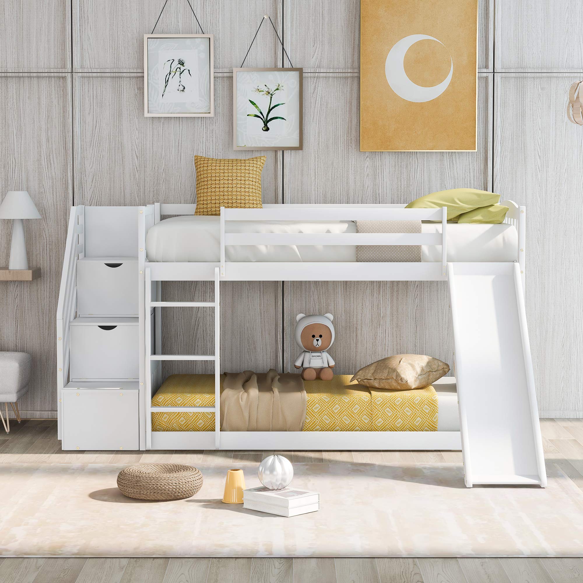 Flieks Twin Over Twin Bunk Bed with 2 Dr... |