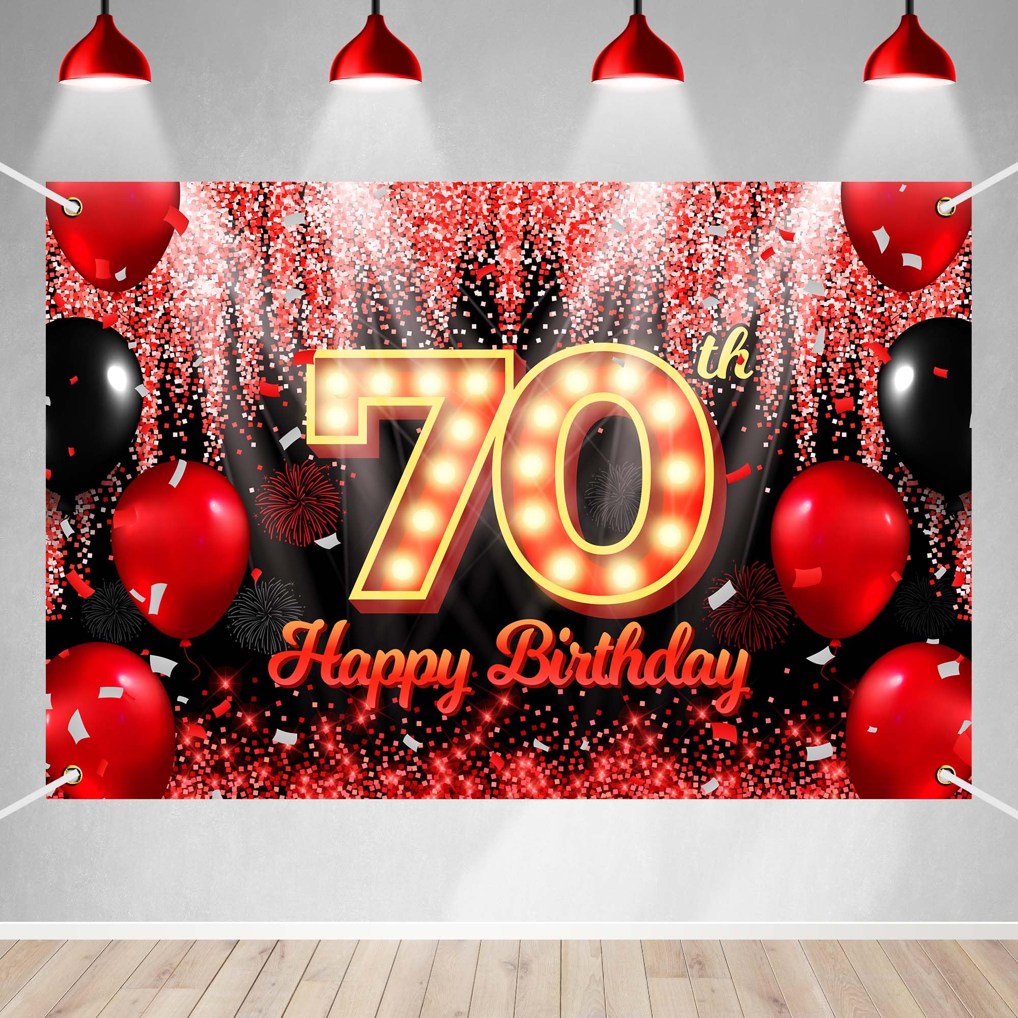 Happy 70th Birthday Backdrop Banner Blac... |