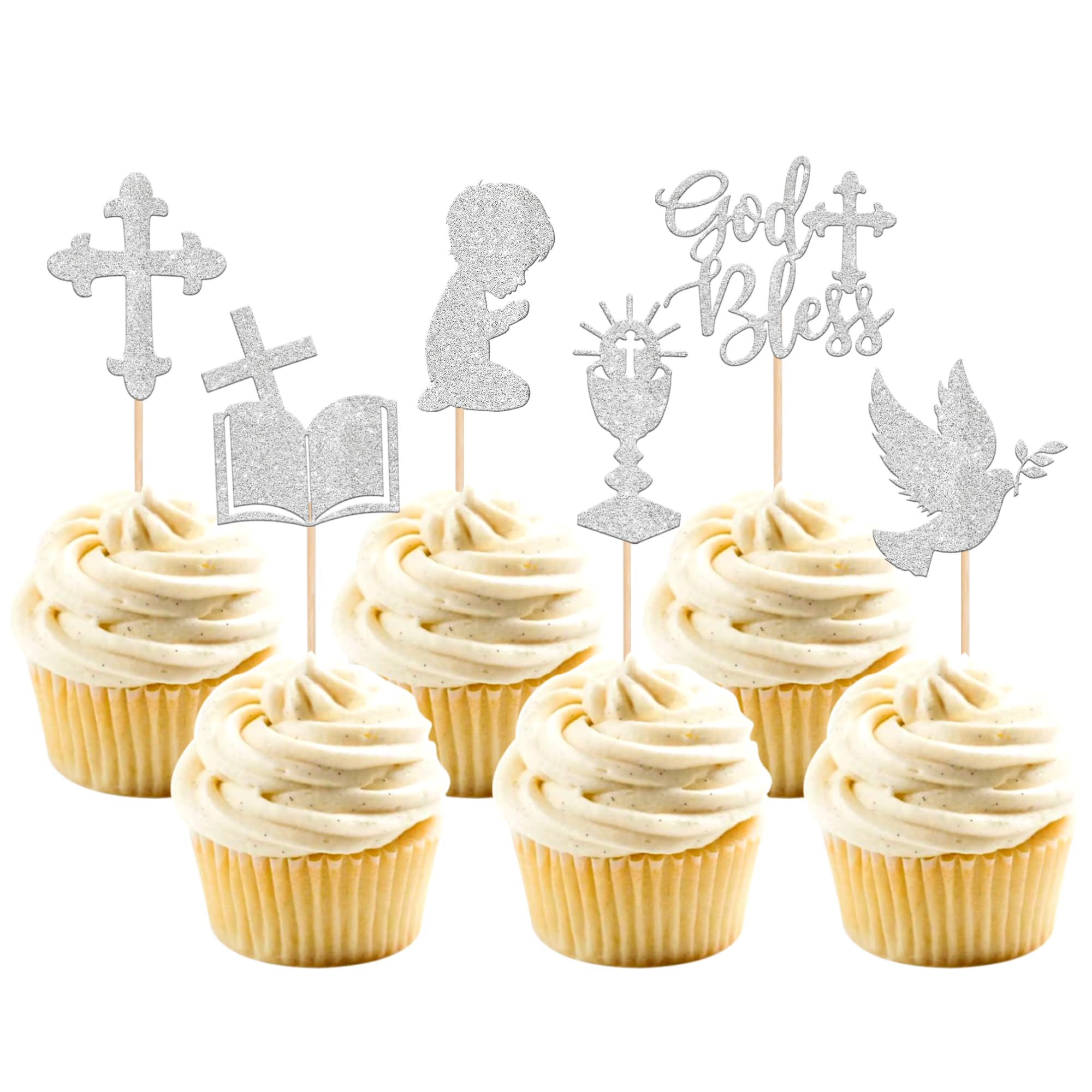 24 PCS Boy God Bless Cupcake Toppers Gli... |