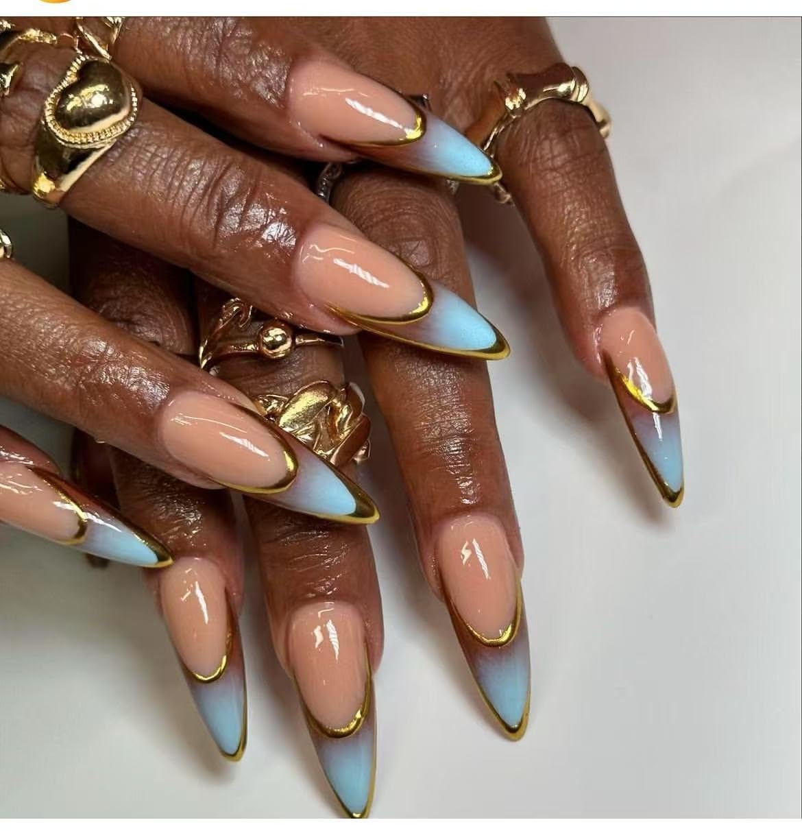 Blue Ombre French Tips Nails| Almond Pre... |