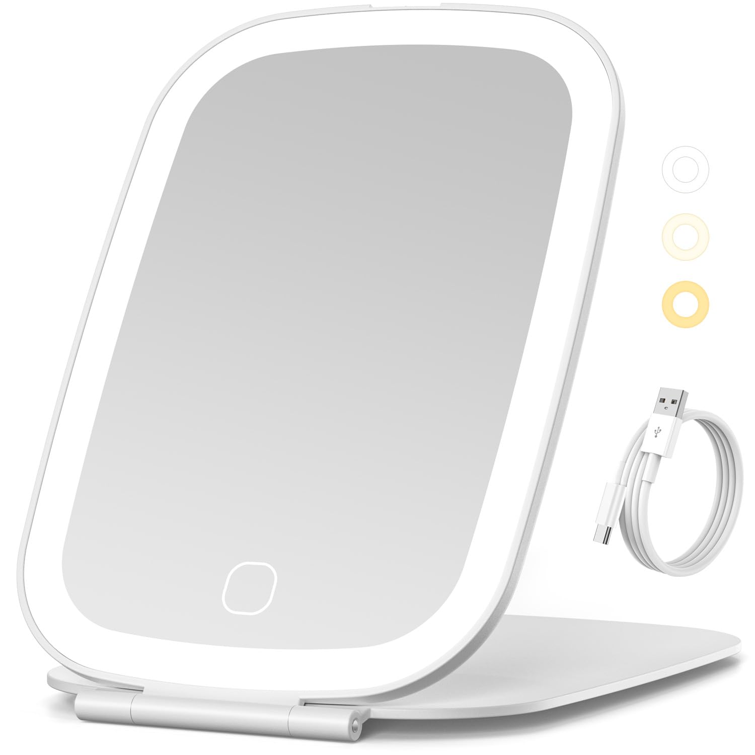 Rechargeable; This portable travel makeup mirror features a built-in 1000mAh rechargeable battery with USB-C charging. A full charge provides at least 2 hours of continuous use—no need to replace batteries or recharge frequently. It automatically shuts off after 30 minutes of inactivity to save power, making it ideal for travel Bright LED Lighting; This travel vanity mirror is surrounded by 64 custom LED lights. Even though it uses fewer LEDs than standard 72-LED mirrors, it’s 50% brighter—giving you a clear, well-lit view for precise makeup application. Just long-press the touch sensor to adjust brightness from 10% to 100% Smart Light Modes; This lighted travel mirror offers three lighting options: cool white, natural light, and warm light. Switch seamlessly between them with a single touch—so your makeup looks flawless in any lighting Travel Sized Design; Measuring 7.5 x 5.2 inches and weighing 260 grams (about 9.2 oz)—roughly the size of an iPad mini—this slim, lightweight, compact, and foldable mirror is easy to carry and stable enough for use on a desk A Thoughtful Gift; Made with high-quality ABS and clear, distortion-free glass (no magnification), this flat light up travel mirror shows your true reflection without warping. It’s a great choice for everyday use or as a gift for your girlfriend or family. If you have any questions, we’re always happy to help! NEZZOE LED Travel Makeup Mirror – Your Perfect Beauty Companion On the Go This rechargeable LED lighted travel mirror is designed for makeup lovers who need clear, professional lighting anytime and anywhere. Whether you’re traveling, working, or touching up your makeup on the go, it delivers consistent brightness and natural color rendering for flawless results. Rechargeable & Eco-Friendly Built-in 1000mAh battery with USB-C charging supports up to 2 hours of continuous use. The auto shut-off function helps save power, making it extremely convenient for long trips and daily use. Ultra-Bright & Dimmable LED Lighting With 64 high-efficiency LEDs that provide 50% brighter lighting than standard mirrors, you can easily adjust brightness from 10% to 100% for precise makeup, eyeliner, eyebrows and skincare. 3 Color Lighting Modes Cool white, natural light and warm light allow you to match any environment—office, home, outdoor or party—so your makeup always looks perfect. Ultra Slim & Travel Friendly Compact, foldable and lightweight, this mirror fits easily in purses, backpacks and luggage. Stable construction also supports tabletop use at home or in hotels. High-Quality & Thoughtful Gift Crafted with durable ABS and distortion-free glass for a clear, true reflection. It is an elegant and practical gift for women, girls, girlfriends, wives, family and friends on birthdays, holidays and special occasions. Package Includes: 1 x LED Travel Makeup Mirror 1 x USB-C Charging Cable 1 x User Manual
