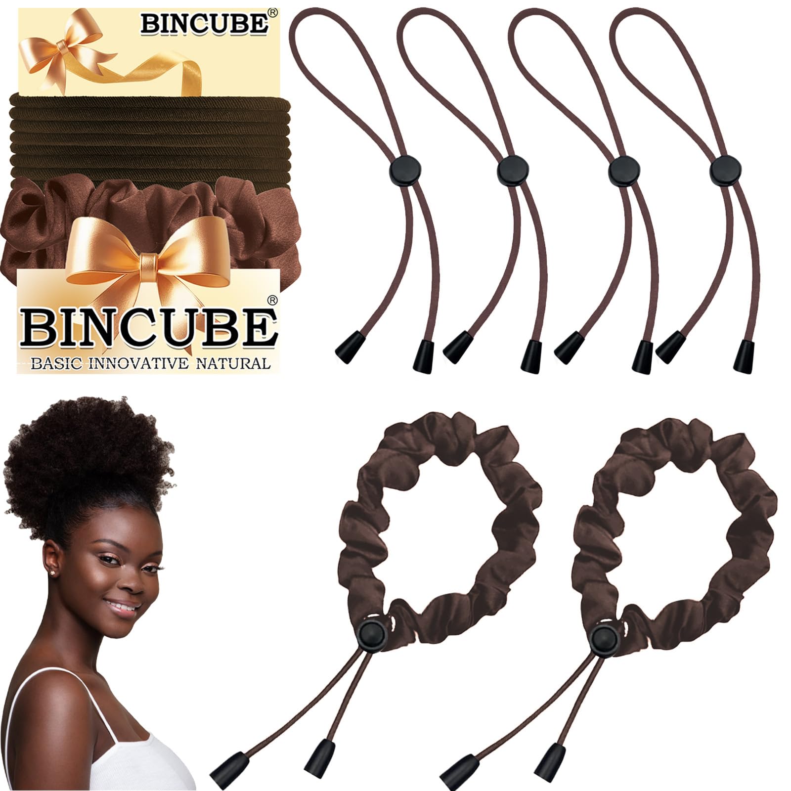 6pcs Brown Adjustable Hair Ties for Afro... |