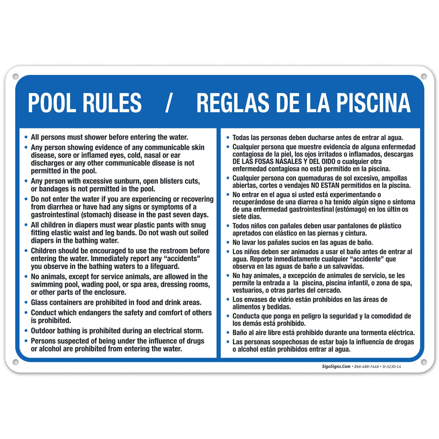 Pool Rules Sign, Bilingual English Spani... |