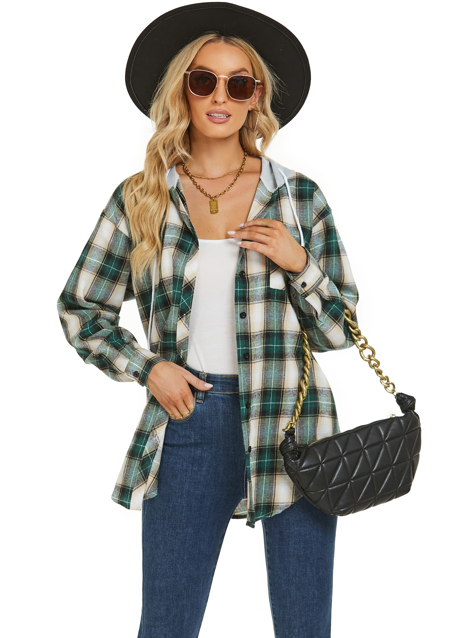 Women's Plaid Flannel Shirts Hoodie Long... |