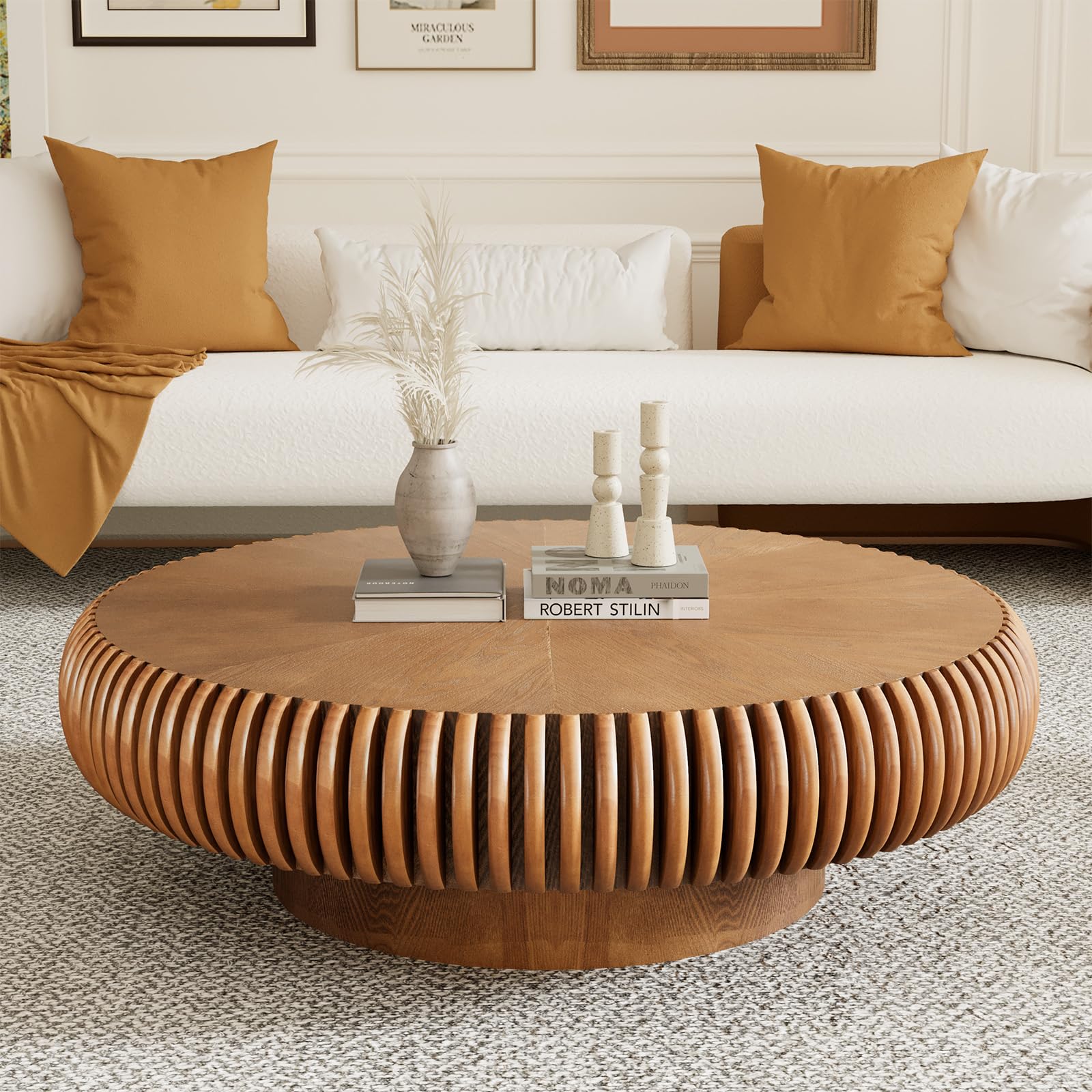 39.37" Round Drum Coffee Table Brown Cir... |