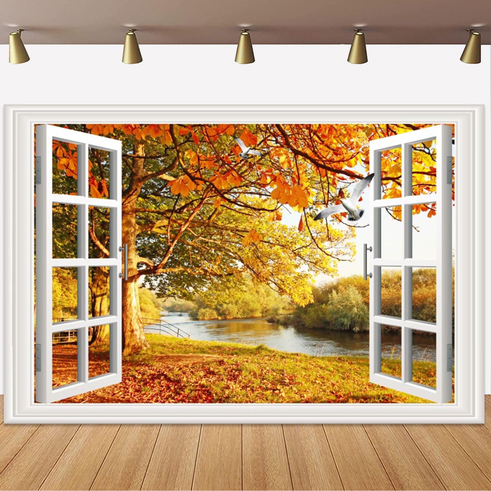 6x4ft Fall Window Backdrop Autumn Golden... |