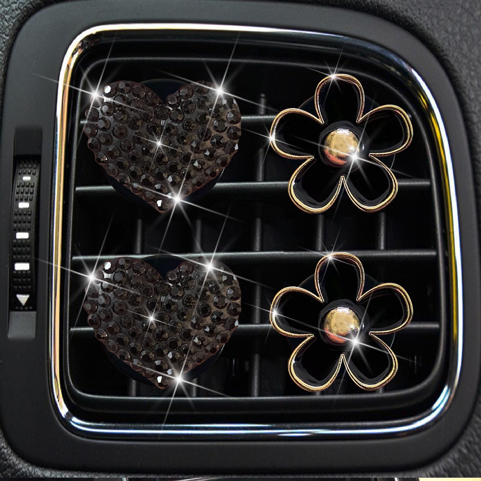 4 Pcs Black Bling Heart and Daisy Car Ai... |