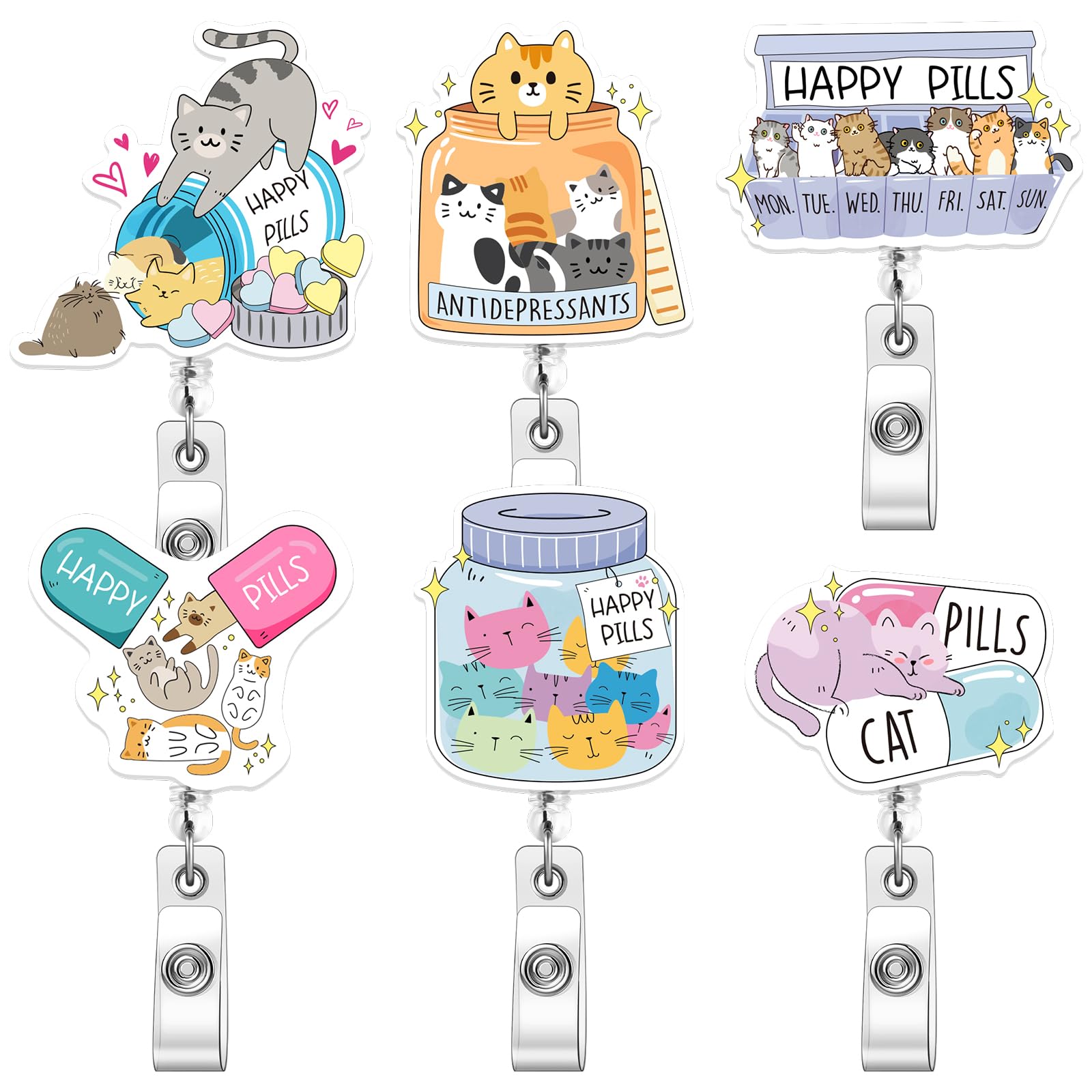 Geyoga 6 Pcs Cats Badge Reel Happy Pills... |