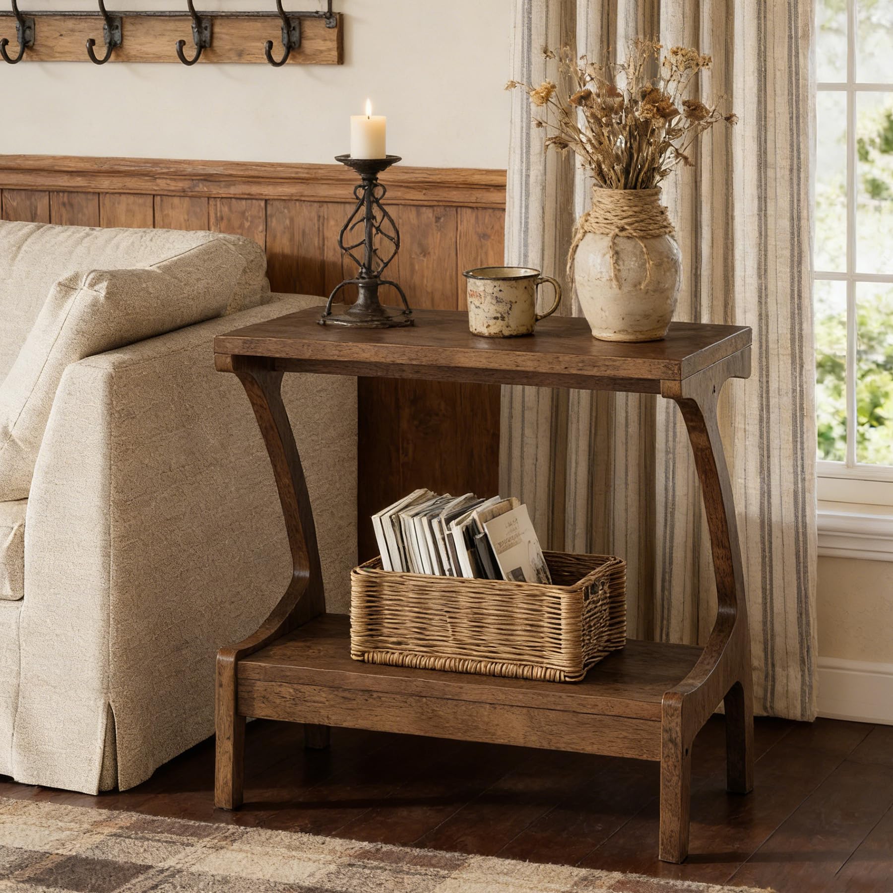 TRIBEWOOD Solid Wood End Table with 2-Ti... |