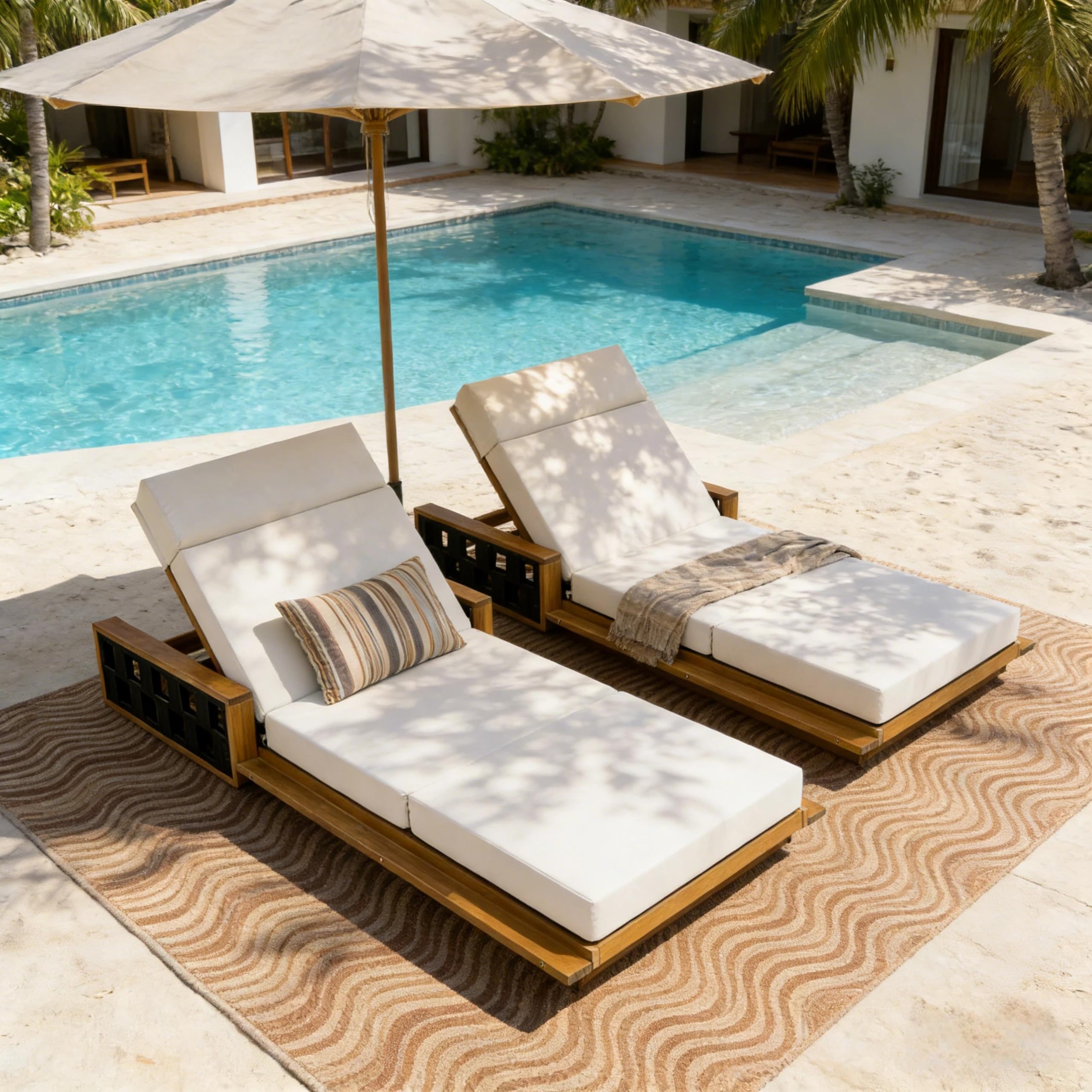 Merax Acacia Wood Patio Chaise Lounge Se... |