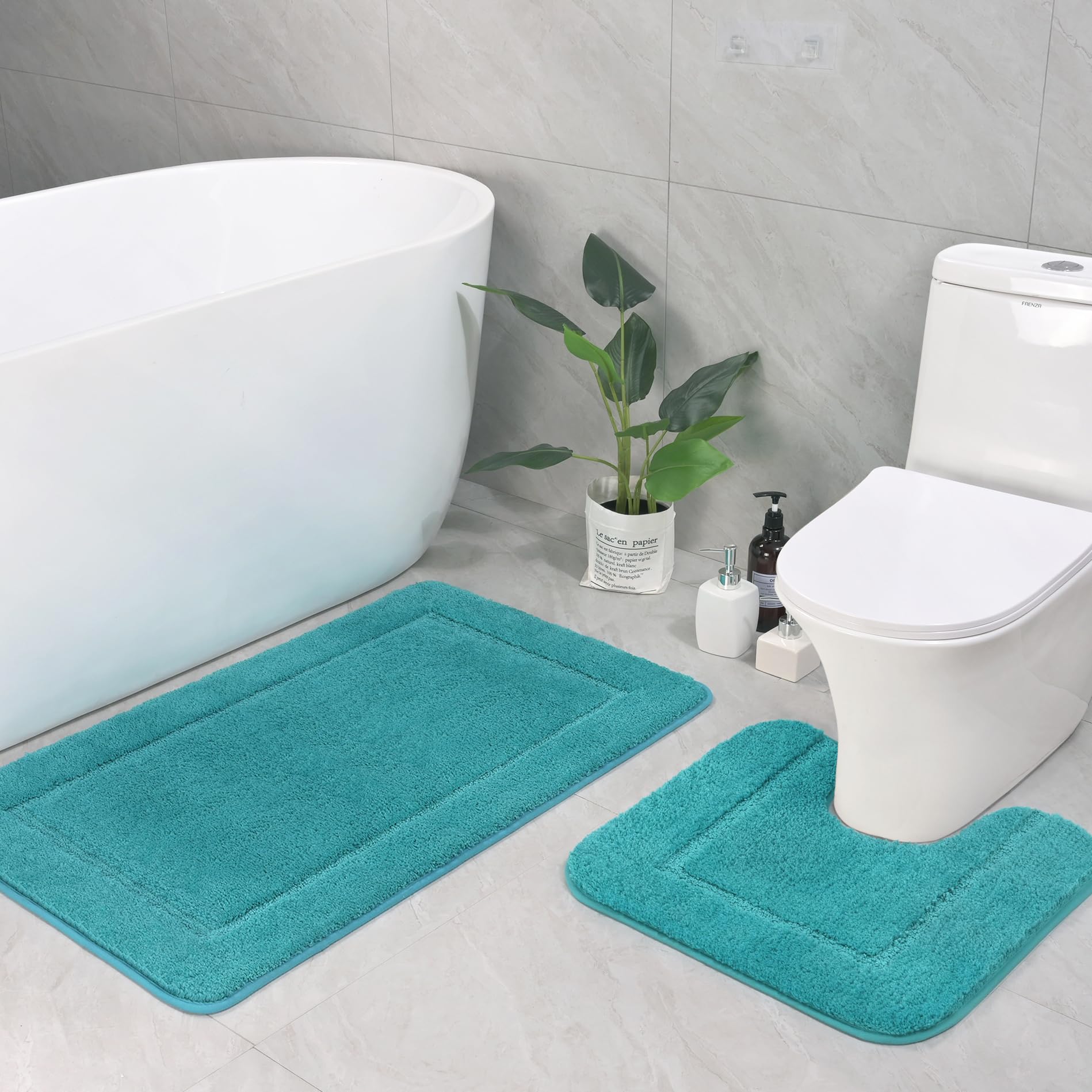 LOCHAS Bathroom Rug Set Teal Blue, Soft ... |