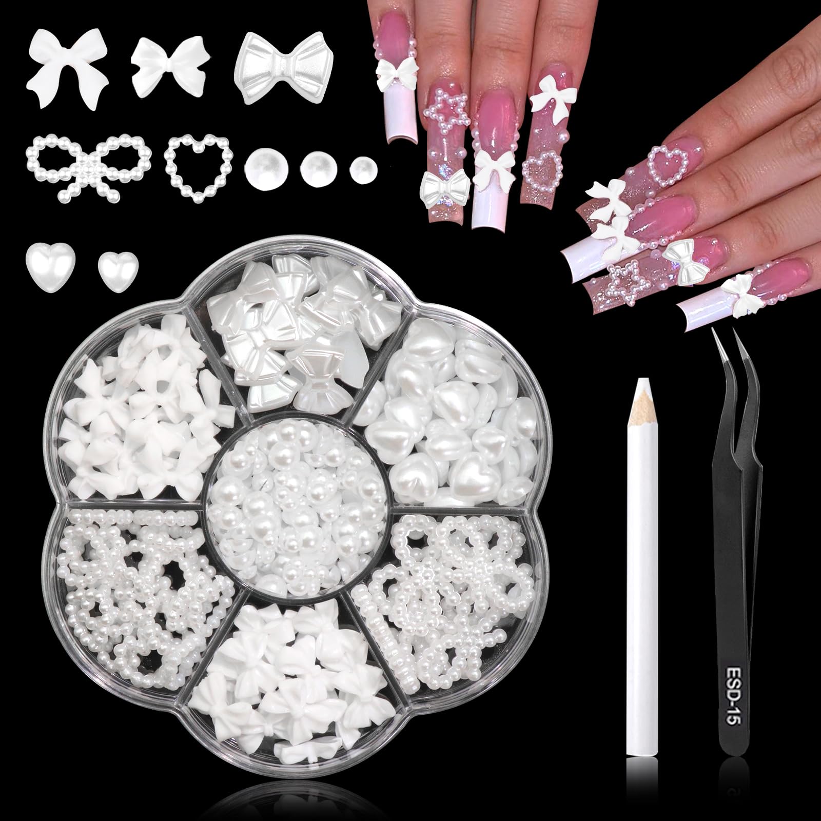 RODAKY Bow Nail Charms White Heart Charm... |
