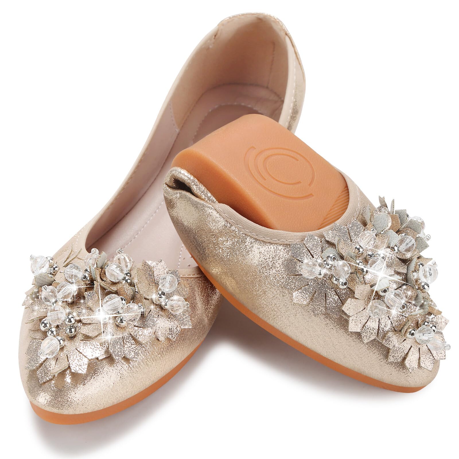 KUNWFNIX Women Ballet Flats Rhinestone W... |