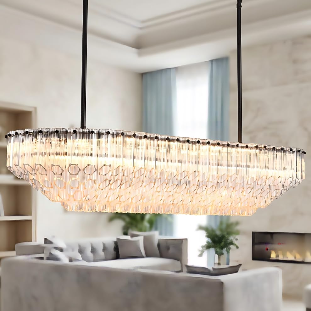 【Handcrafted 43-Inch Round Crystal Dining Room Chandelier】Expertly arranged with 100+ amber-tipped K9 crystal rods, this dining room chandelier radiates warm golden illumination perfect for grand dining tables, estate dining rooms, hotels, and commercial kitchens. Multi-tiered layers elevate luxury for living rooms or kitchen islands. 【European Black Chandelier Design】Featuring a precision-engineered honeycomb structure with a black chandelier suspension rod, this modern chandelier for Dining Room casts geometric shadows ideal for high-ceiling foyers (84" max height) or dramatic entrance statements. Brass chandelier accents complement offices, bedrooms, or conference rooms. 【Customizable Dining Room Light Fixture】Includes 35" chain + 3 extension rods for adjustable drops , adapting to ballrooms, cozy breakfast nooks, kitchen islands, or restaurants. Versatile for living room chandelier layouts or bedroom elegance. 【Museum-Grade Crystal Chandelier】56-pound wrought iron frame supports 100+ hand-polished K9 crystals, meeting ETL standards for coastal mansions, hotel lobbies, galleries, and luxury kitchens. Brass-reinforced hardware ensures durability for high-traffic foyers or commercial offices. 【Universal Modern Chandelier Installation】Flush-mount hardwired design fits 9-ft ceilings in bedrooms, kitchens, or dining rooms. Includes video guide for DIY setup in living rooms, entrances, or hotel suites. Compatible with dimmers for restaurants or cozy dining tables. Chandeliers for dining Room, rectangular dining room light fixture over table, dining room chandelier, kitchen island chandelier, island lighting, chandelier for kitchen island,dining room chandelier over table