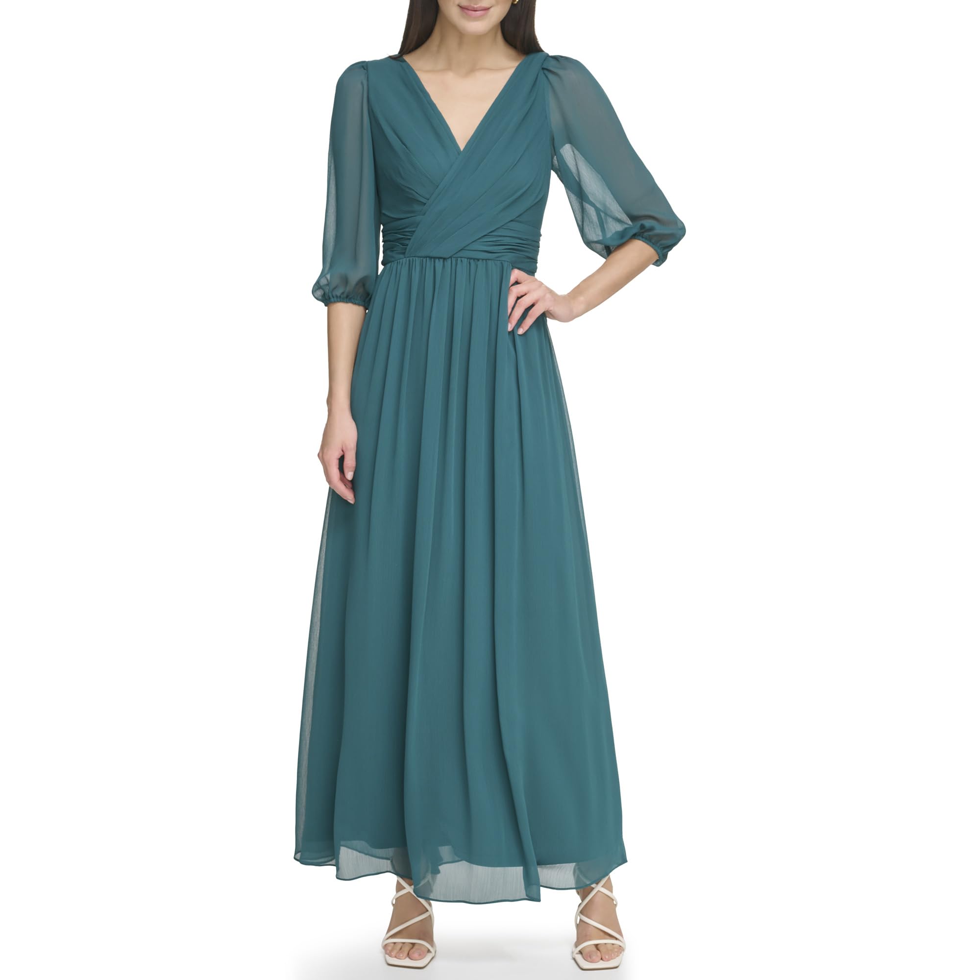 DKNY Womens Long Chiffon V-Neck Dress... |