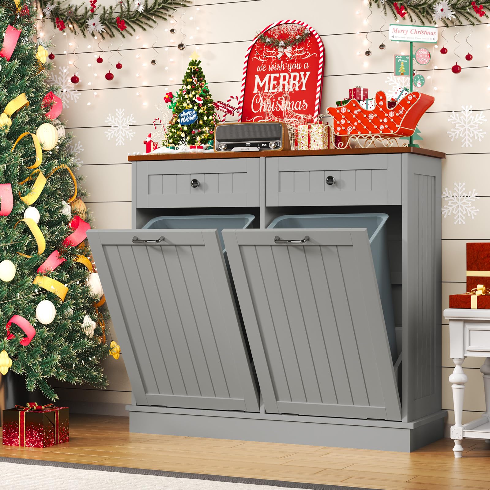LOUVIXA Tilt Out Trash Can Cabinet with ... |