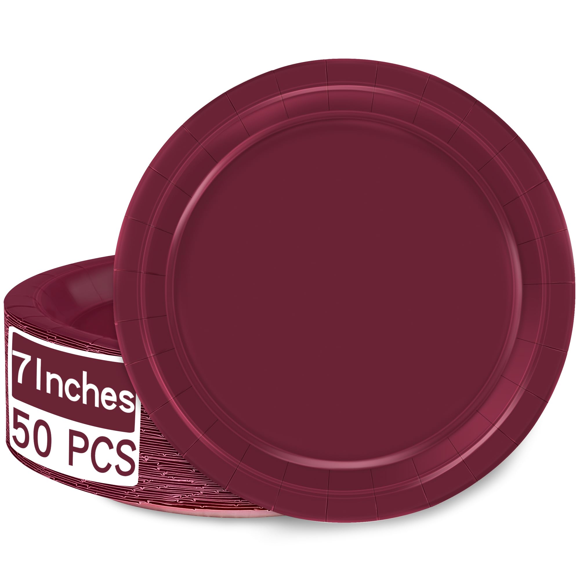 QZYL 50 Pieces Paper Plates, 7" Burgundy... |